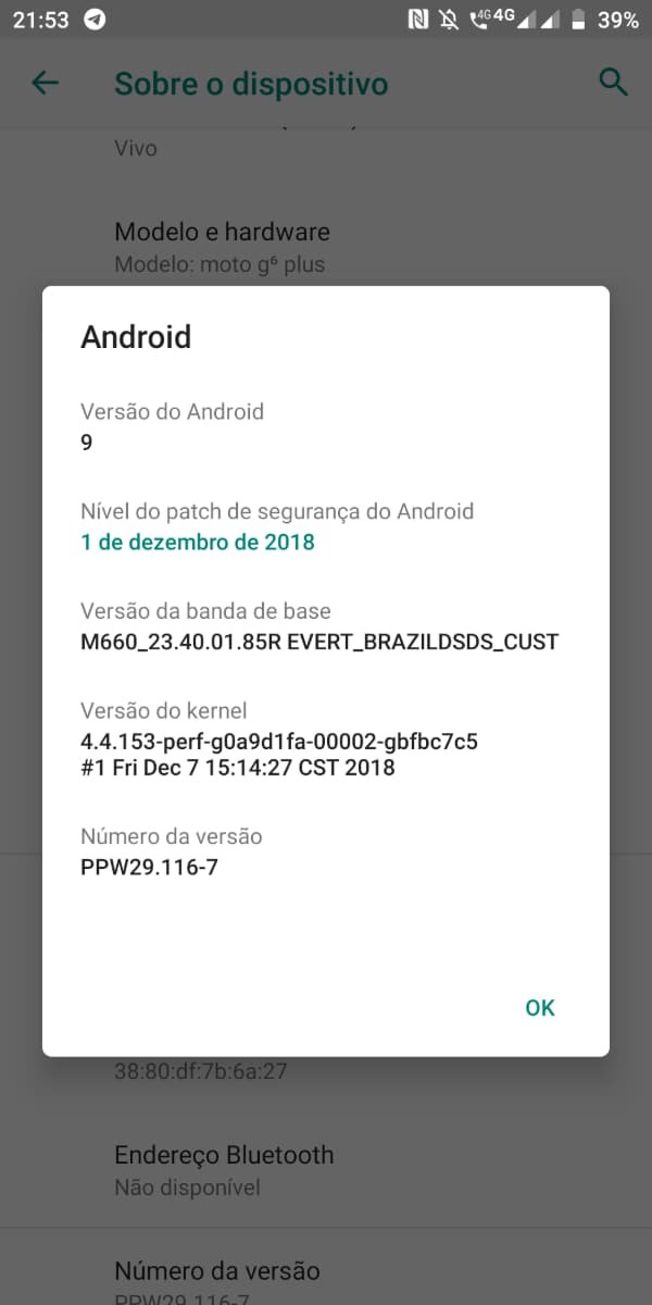Depois de lançar o Android 9.0 Pie para o Motorola One e Moto X4 no Brasil, a Motorola agora liberou o software em soak test para alguns proprietários do Moto G6 Plus. As informações foram postadas por alguns deles em grupos nas redes sociais.