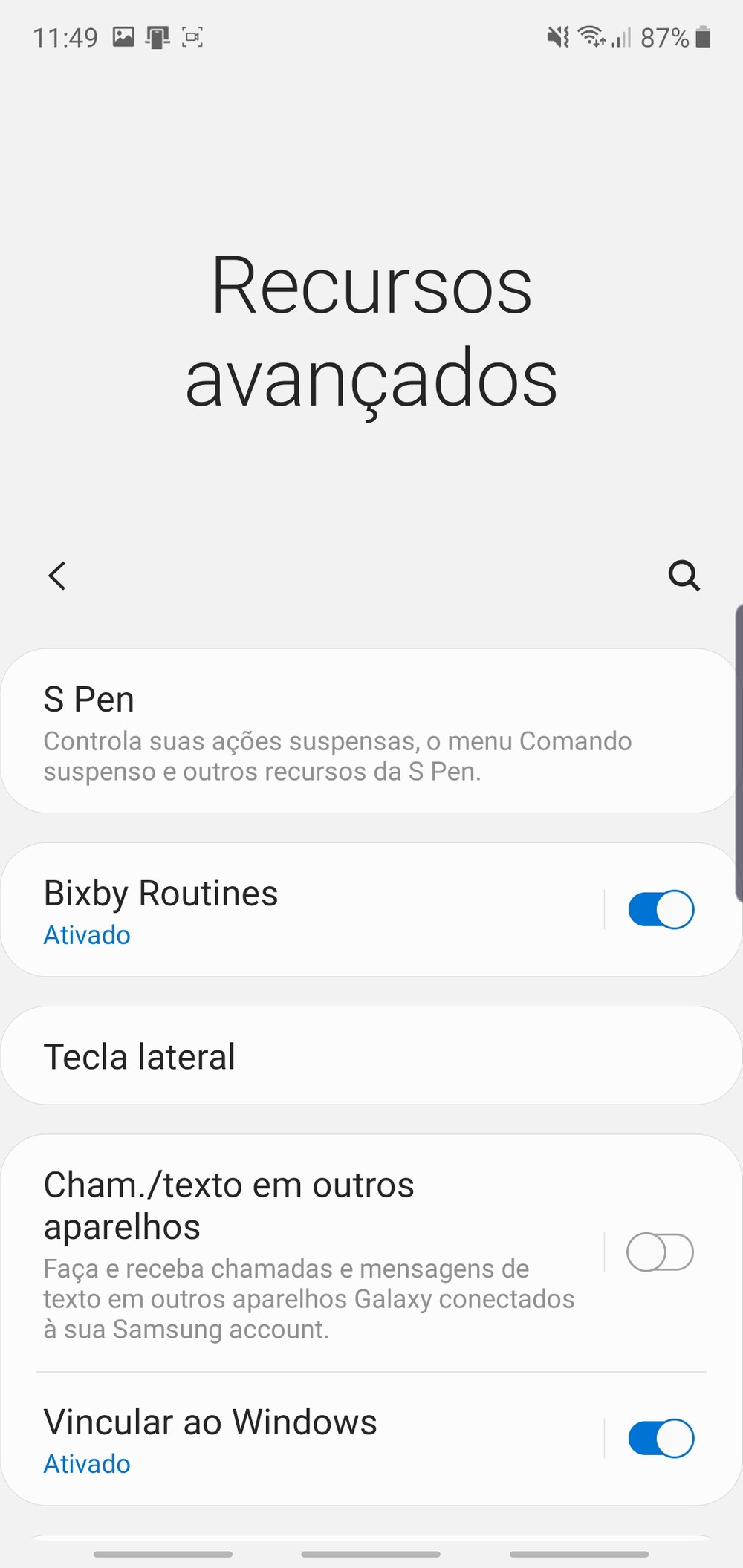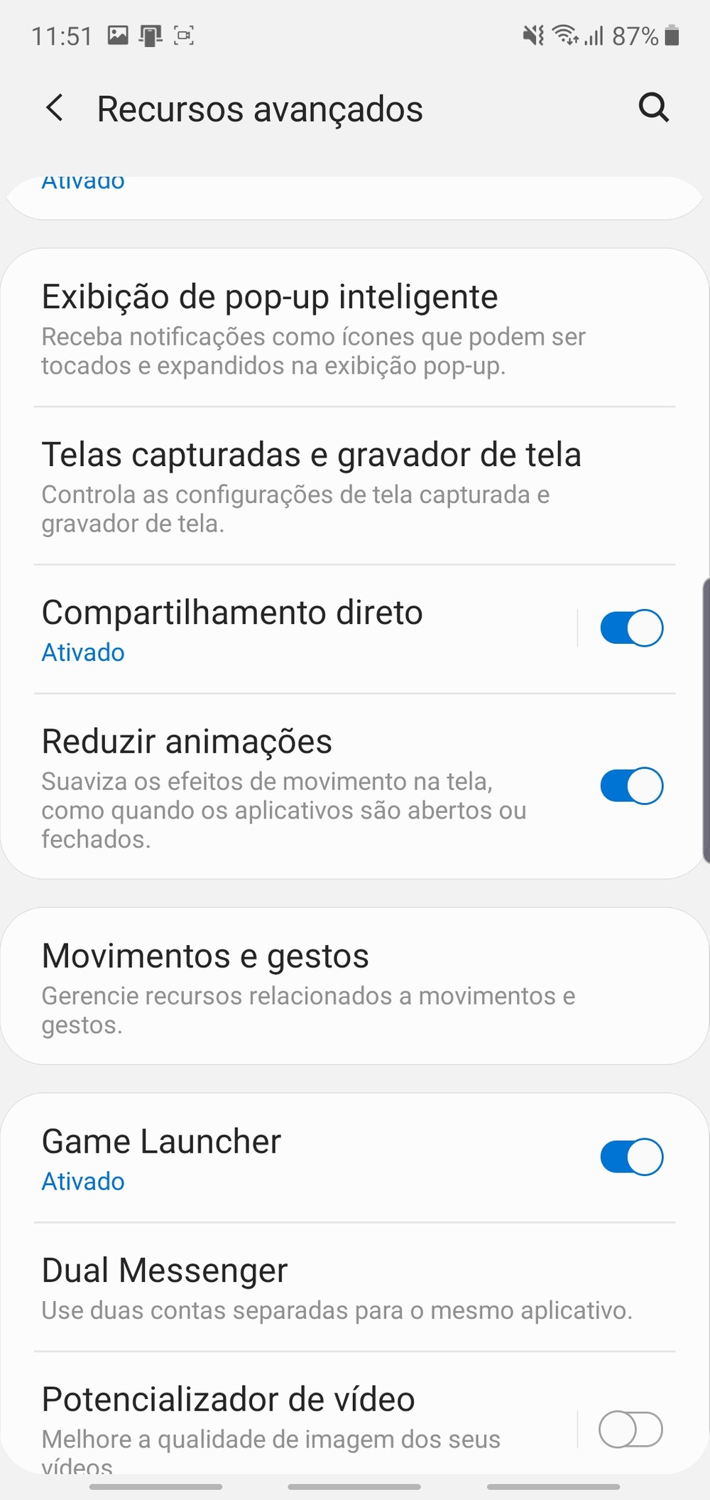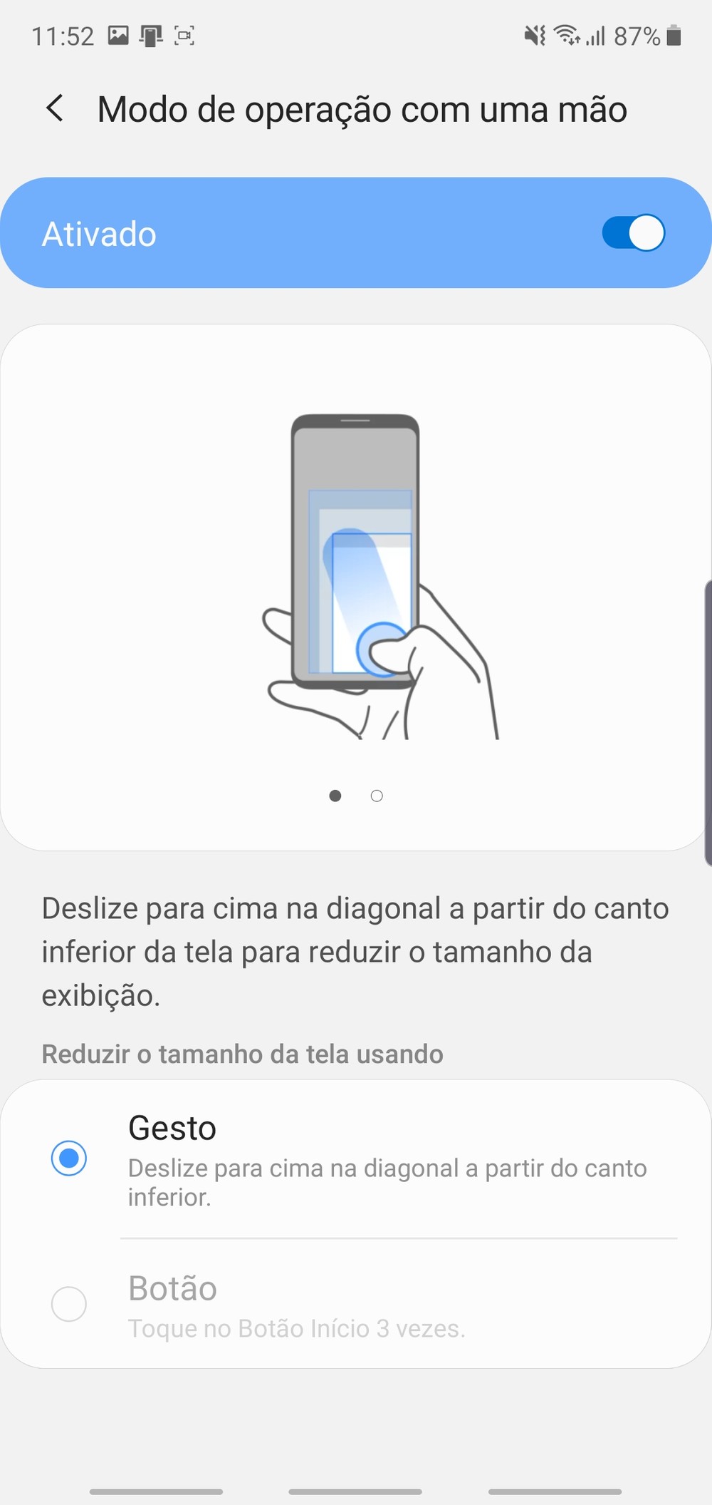Se mesmo assim você ainda achar desconfortável usar o Galaxy Note 10 Plus com apenas uma mão, você pode reduzir a área da interface do Android. Para isso vá em Configurações > Recursos Avançados > Movimentos e Gestos e ative a opção Modo de Operação com uma Mão.