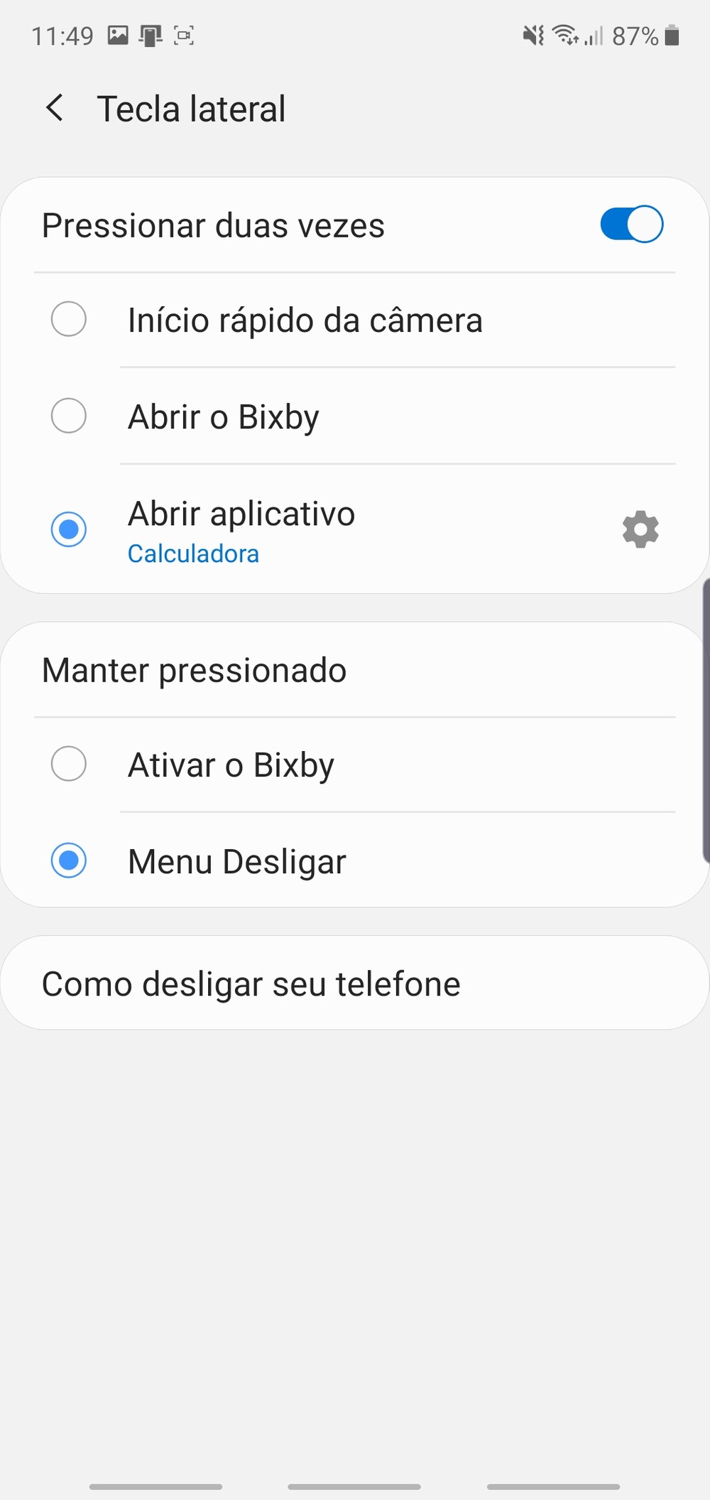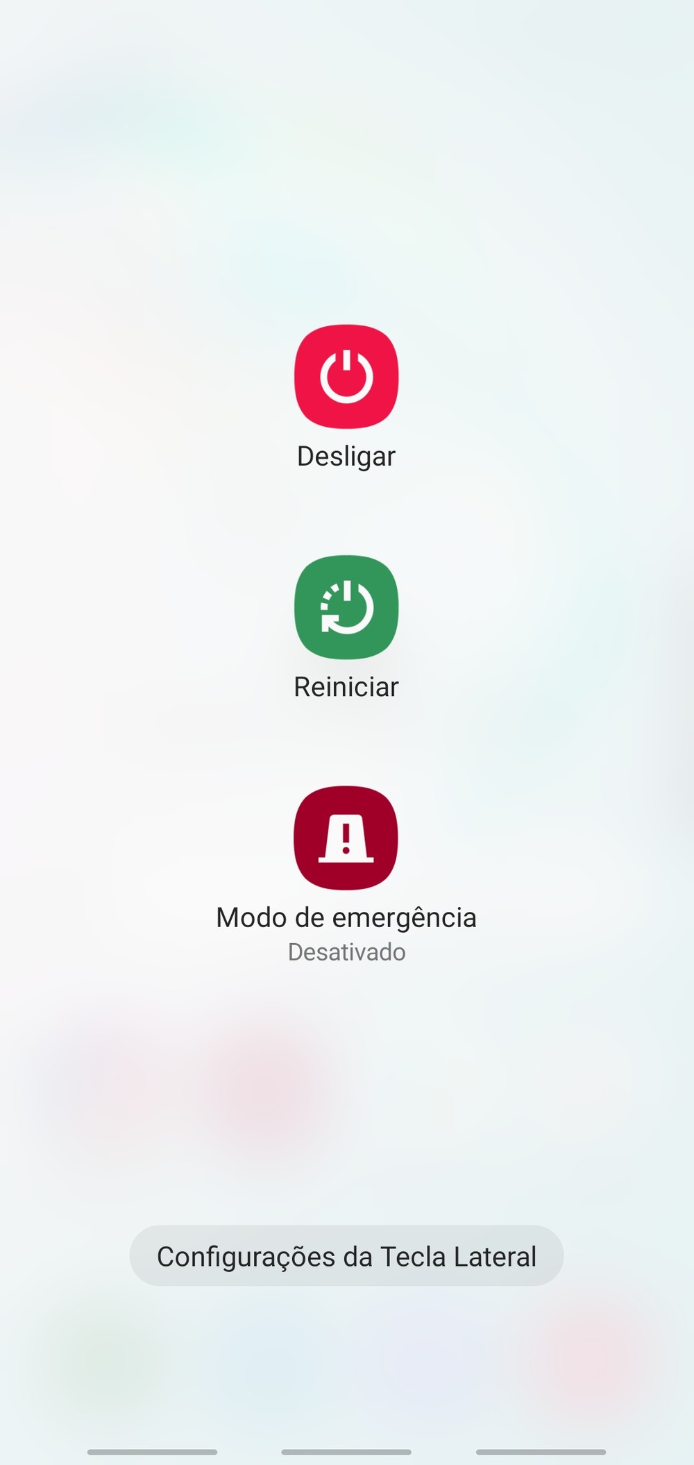 Você pode mudar isso em Configurações > Recursos Avançados > Tecla lateral e mudar a opção Manter Pressionado para exibir o menu de desligar ao invés de acionar a assistente.