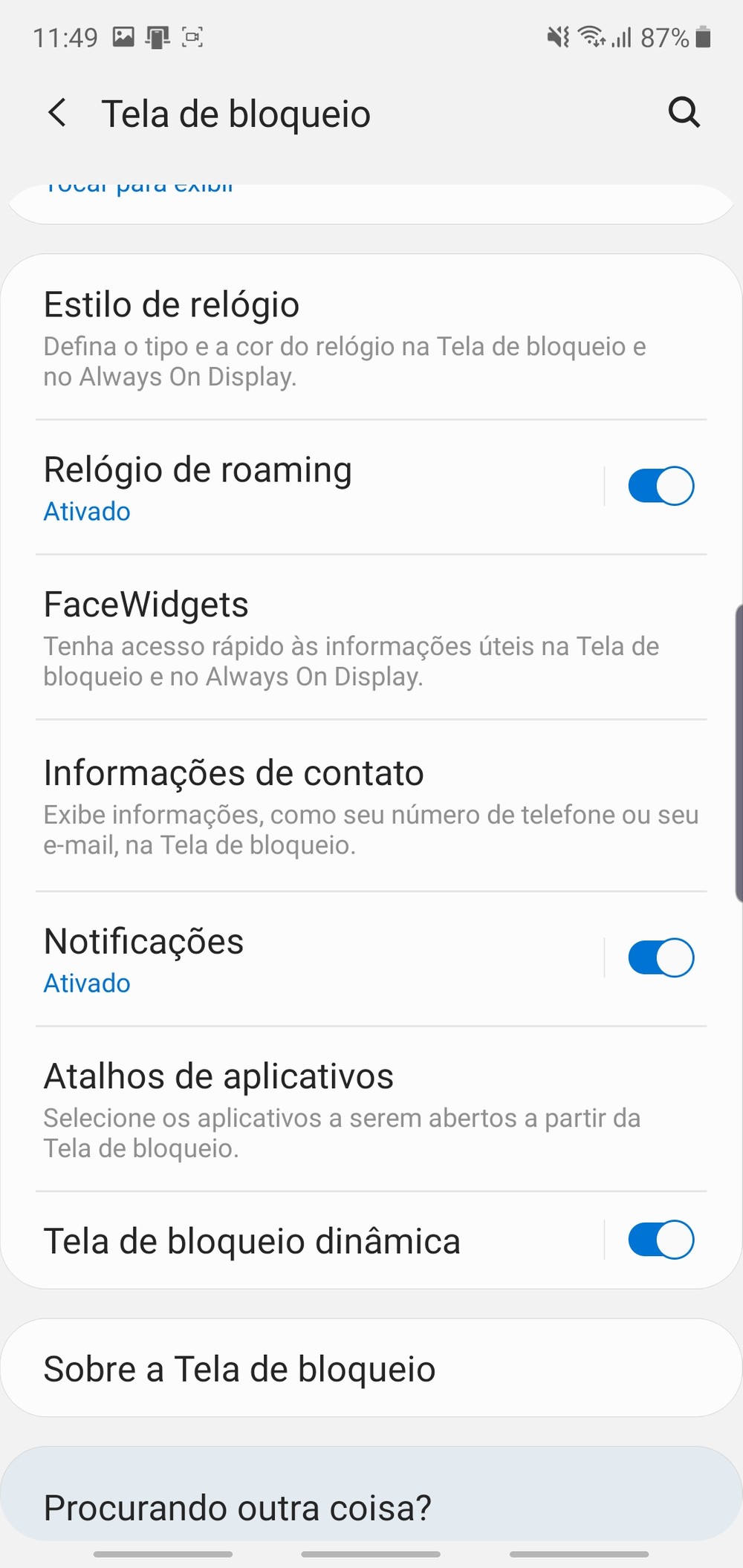 Para ativar estes atalhos, vá em Configurações > Tela de Bloqueio e selecione a opção Atalhos de apps. Por padrão, eles ficam no canto inferior da tela de bloqueio, como em qualquer Galaxy, mas se você mudar para a opção Botões Flutuantes, eles vão aparecer ao lado do leitor biométrico. Você pode escolher quais atalhos deseja usar.