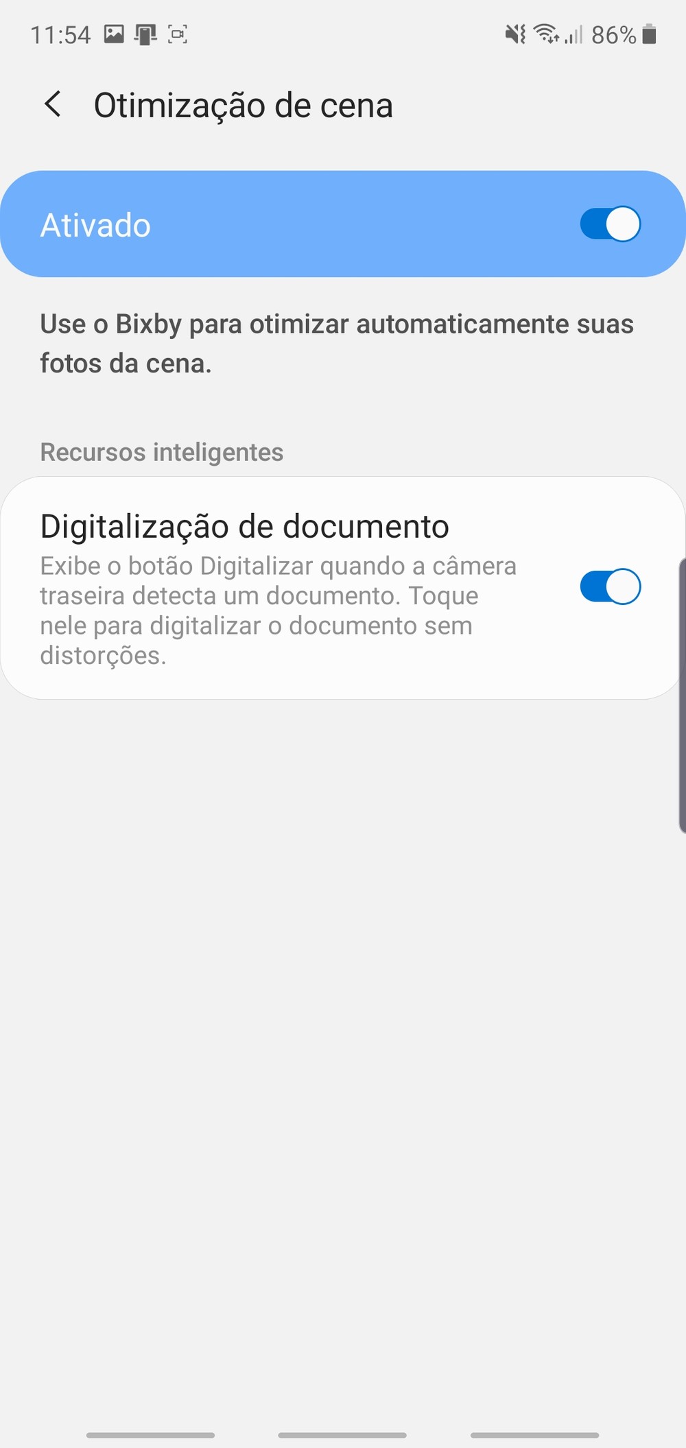 Em ambos os modelos é possível digitalizar documentos em alta resolução. Você pode acessar este recurso diretamente pelo aplicativo de câmera. Vá no menu de configurações, entre em Otimizador de Cena e selecione Digitalização de Documentos.