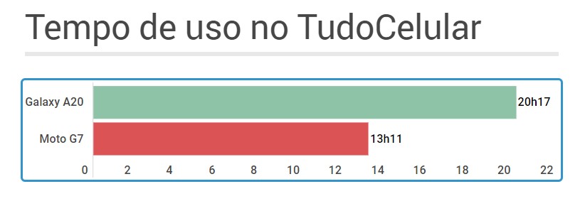 Não pelo que vimos em nossos testes. O A20 realmente entregou tempo de uso bem melhor, ultrapassando as 20 horas. O G7 ficou em cerca de 13 horas no nosso teste, que é padronizado e permite comparar os modelos que passam por nossa bancada.