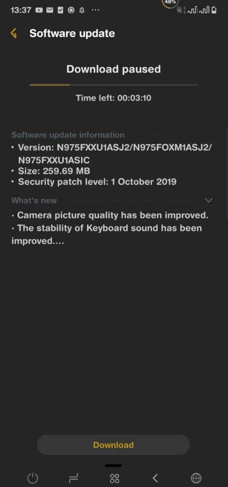 Os firmwares de número N970FXXU1ASJ2 e N975FXXU1ASJ2 estão sendo enviados para os smartphones como o intuito de corrigir problemas internos no Android, não influenciando muito na parte visual do sistema do aparelho.
