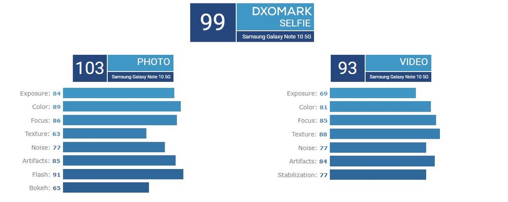 O site escreve: “um excelente desempenho em toda a linha significa que, seja fotografando ou gravando vídeos, você pode ter certeza que vai obter excelentes resultados do principal e mais recente dispositivo da Samsung. Enquanto as pontuações são muito semelhantes ao Galaxy S10 5G, alguns ajustes finos dos algoritmos de processamento melhoraram a excelente qualidade de imagem observada anteriormente nos dispositivos premium da Samsung.”
