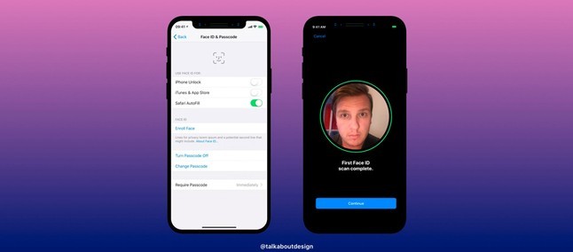 Veterana nesse ramo, a Apple consegue um processo bem menos burocrático para o cadastro de um rosto. O usuário abre o menu e então encaixa seu rosto em uma área ampla de visão, girando o pescoço uma vez para que o sensor capte uma imagem com dados matemáticos de profundidade para criação de um modelo 3D armazenado no aparelho. O procedimento é realizado uma segunda vez por garantia.