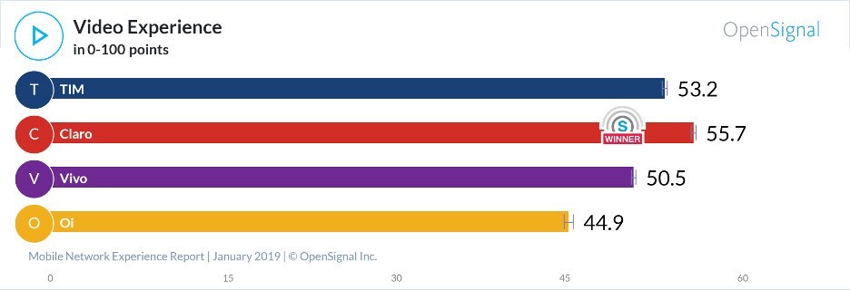 Os números ainda mostram que, apesar da TIM liderar a disponibilidade, a empresa perde o posto para a Claro quando o assunto é maior velocidade de download, melhor experiência em vídeo e maior velocidade de upload. Confira abaixo como a rede da operadora se sai em vídeo: